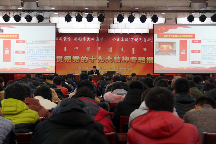 學院黨委書記孫智憑主持報告會。他指出,根據(jù)中央及自治區(qū)黨委關于做好學習貫徹黨的十九大精神宣講工作統(tǒng)一要求,全區(qū)各盟市、廳局、高校、企業(yè)、部隊等單位自上而下掀起了學習熱潮,自治區(qū)黨委迅速組建成立了學習宣傳貫徹黨的十九大精神宣講團。今天鐵鋼同志的報告,運用了大量生動豐富的實例,結合我院交通特色的實際,全面準確地解讀了十九大精神,使全體師生對習近平新時代中國特色社會主義思想的豐富內涵、對中國特色社會主義進入新時代的重大意義有了更深刻的理解,對全面建成社會主義現(xiàn)代化國家的新征程、全面推進“五位一體”總體布局、堅定不移全面從嚴治黨,切實抓好黨的十九大精神的貫徹落實等重大部署有了更深刻的理解,體現(xiàn)了鐵鋼同志深厚的理論功底和豐富的實踐經(jīng)驗,對師生,尤其是青年學生的教育深刻而重要。鐵鋼同志的報告不僅是一場深刻的政治理論課,更是一場生動的現(xiàn)實教育課,令我們振奮精神,使我們深受教育和啟發(fā)。