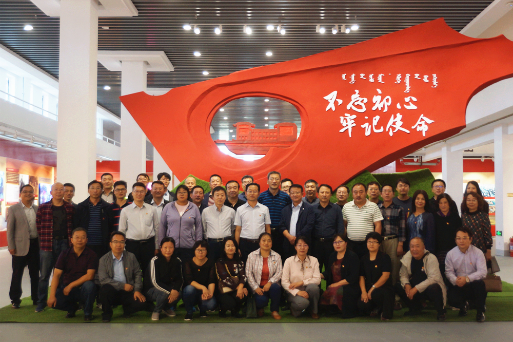 在舉國上下歡慶新中國成立70周年之際,9月25日下午,學(xué)院黨委組織了“不忘初心、牢記使命”主題教育處級干部現(xiàn)場教育。孫智憑書記帶領(lǐng)全院副處級以上干部50余人前往內(nèi)蒙古展覽館,參觀自治區(qū)“不忘初心、牢記使命”主題教育系列展:“黨的光輝照北疆——內(nèi)蒙古老宣傳畫老照片文獻(xiàn)史料展”與“內(nèi)蒙古民族新文化從這里起步——內(nèi)蒙古文工團回顧展”。
