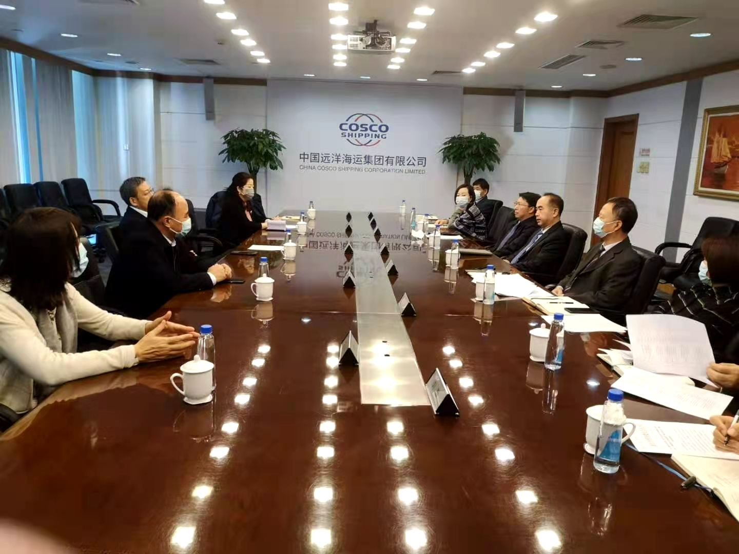 武鈞副院長(zhǎng)、劉林平副處長(zhǎng)、任建偉副主任就開(kāi)展科研合作與中遠(yuǎn)集團(tuán)技術(shù)中心相關(guān)人員進(jìn)行了交流。