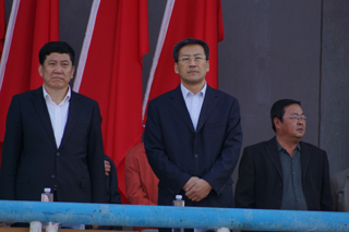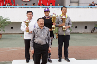 與會(huì)領(lǐng)導(dǎo)為獲得學(xué)生男子團(tuán)體前六名的單位頒獎(jiǎng) |