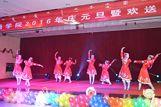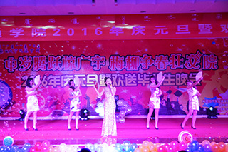 柴金義院長(zhǎng)致新年賀詞 領(lǐng)導(dǎo)與晚會(huì)演職人員合影 左為常務(wù)副院長(zhǎng)董平,右為副院長(zhǎng)武鈞 右為黨委副書記、紀(jì)委書記白托婭,左為黨委委員趙志蒙 開場(chǎng)舞《蒙古族舞蹈:賽白努》 晚會(huì)主持人 部門領(lǐng)導(dǎo)、系部領(lǐng)導(dǎo)及學(xué)工辦主任、班主任 教師們傾情表演《歌曲串燒》 歌伴舞表演《曹操》 魔術(shù)表演 歌曲《站在草原望北京》 歌曲《漫步人生路之夜來(lái)香》 舞蹈《up down & shake it》 朗誦《不悔夢(mèng)歸處 只恨太匆匆》 小品《我是演員》 相聲《我要畢業(yè)了》 動(dòng)感街舞表演 舞蹈《青春的告白》
