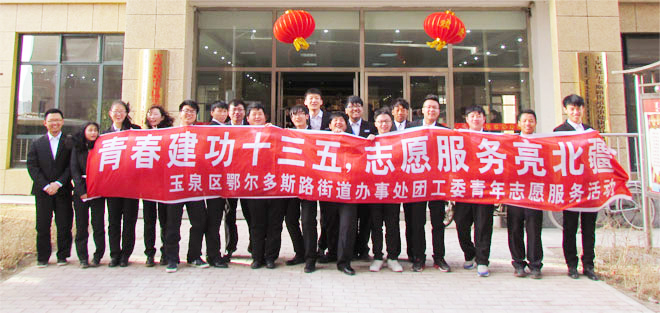 今年的3月5日,是我國第五十三個(gè)“雷鋒日”。社團(tuán)聯(lián)合會的20名委員們代表內(nèi)蒙古大學(xué)交通學(xué)院自愿、積極地參與了玉泉區(qū)鄂爾多斯路街道辦事處團(tuán)工委舉辦的“青春建功十三五,志愿服務(wù)亮北疆”青年志愿者服務(wù)活動。社聯(lián)委員們走進(jìn)了社區(qū),看望孤寡老人,清潔衛(wèi)生,協(xié)助環(huán)衛(wèi)工人清理道路垃圾,為小區(qū)居民送去了溫暖。