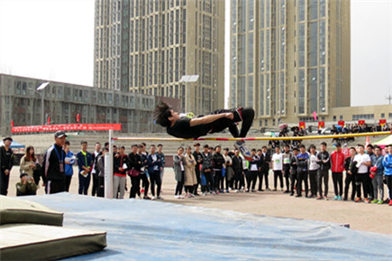 裁判員代表高群博和運(yùn)動(dòng)員代表李元龍莊嚴(yán)宣誓后,學(xué)院健身操隊(duì)和學(xué)生武術(shù)協(xié)會(huì)進(jìn)行了精彩表演,正式拉開(kāi)了運(yùn)動(dòng)會(huì)帷幕。在緊張激烈的兩個(gè)比賽日中,700多名運(yùn)動(dòng)員分別角逐100米、200米、4×100米接力、跳遠(yuǎn)、跳高、鉛球、鐵餅等20多項(xiàng)田徑項(xiàng)目,展現(xiàn)出良好的精神風(fēng)貌和頑強(qiáng)拼搏的意志品質(zhì)。