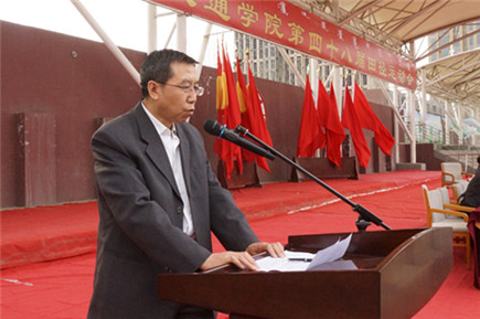 黨委副書(shū)記、紀(jì)委書(shū)記白托婭代表學(xué)院黨政領(lǐng)導(dǎo)致開(kāi)幕詞。她說(shuō),一年一度的田徑運(yùn)動(dòng)會(huì)是學(xué)院貫徹“立德樹(shù)人”教育思想,全面落實(shí)素質(zhì)教育,響應(yīng)團(tuán)中央“走下網(wǎng)絡(luò)、走出宿舍、走向操場(chǎng)”倡議的重要載體,是對(duì)全院群眾性體育工作成果和師生員工運(yùn)動(dòng)水平的一次檢閱,也是對(duì)廣大師生員工競(jìng)爭(zhēng)意識(shí)、團(tuán)隊(duì)精神、頑強(qiáng)意志的一次考驗(yàn),更是全院師生員工精神風(fēng)貌的一次全面展示,已經(jīng)成為校園生活的重要組成部分。高等學(xué)校作為國(guó)家高層次人才培養(yǎng)的重要基地,同學(xué)們的體質(zhì)與健康事關(guān)國(guó)家和民族的未來(lái)。她號(hào)召大家,要以此次運(yùn)動(dòng)會(huì)為契機(jī),繼續(xù)廣泛開(kāi)展“陽(yáng)光體育”,積極倡導(dǎo)“三走”,多種方式加強(qiáng)校園體育文化建設(shè),積極營(yíng)造人人關(guān)心、人人參與體育活動(dòng)的氛圍,我們堅(jiān)信,在學(xué)校黨委和學(xué)院黨委的堅(jiān)強(qiáng)領(lǐng)導(dǎo)下,我院全體師生員工將以更加健康的體魄,更加昂揚(yáng)的姿態(tài),更加飽滿(mǎn)的熱情投入到學(xué)院各項(xiàng)事業(yè)的建設(shè)中來(lái)!