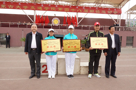學(xué)院黨委副書(shū)記、院長(zhǎng)柴金義為獲得學(xué)生團(tuán)體總分前八名頒獎(jiǎng) 學(xué)院黨委副書(shū)記、紀(jì)委書(shū)記白托婭為獲精神文明先進(jìn)集體頒獎(jiǎng)
