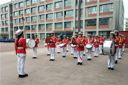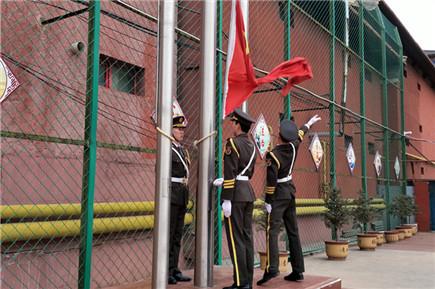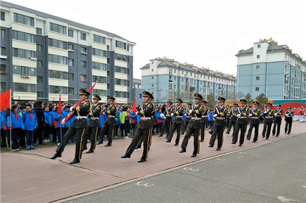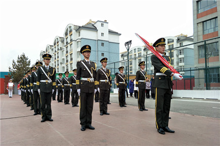 我院國(guó)旗班軍樂(lè)團(tuán)為通順街小學(xué)舉行升旗儀式