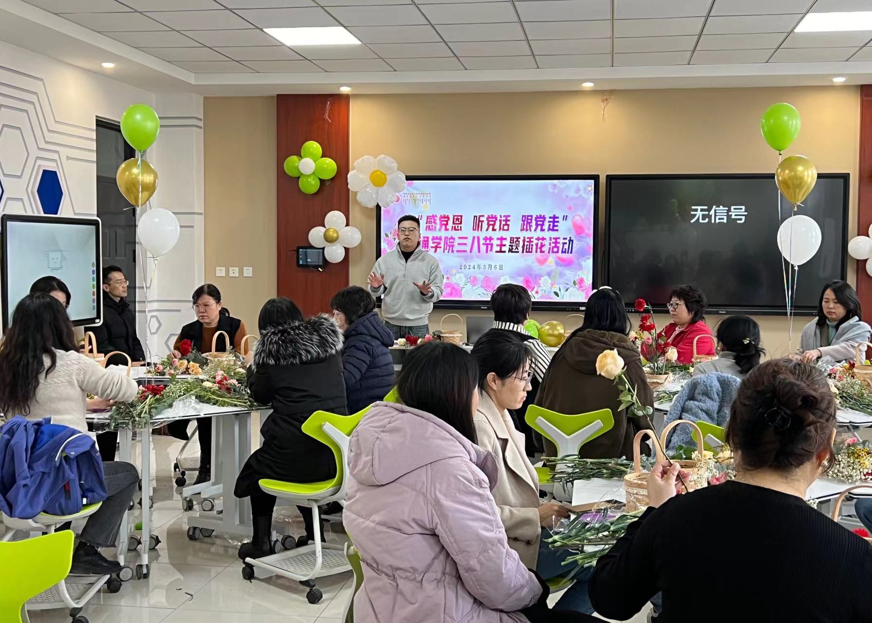 為慶祝三八國(guó)際勞動(dòng)?jì)D女節(jié),豐富女教職工的精神文化生活,3月6日,學(xué)院工會(huì)在交通樓A305智慧教室舉辦了插花活動(dòng),共有70多名女教職工參加此次活動(dòng)。