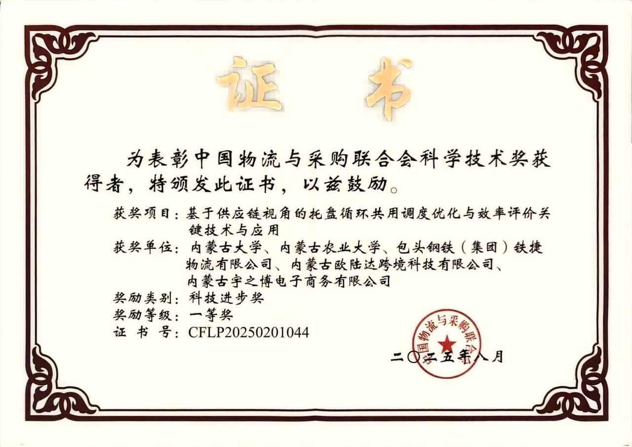 近日,中國物流與采購聯(lián)合會(CFLP)正式公布了2025年度科學技術(shù)獎評審結(jié)果。我院任建偉教授團隊的研究成果“基于供應(yīng)鏈視角的托盤循環(huán)共用調(diào)度優(yōu)化與效率評價關(guān)鍵技術(shù)與應(yīng)用”榮獲科技進步獎一等獎。成果主要完成人:任建偉、李成兵、陳春花、孫哲、徐鐵、李一川、閆振英、霍月英、張鵬、魏中華、喬曉波。